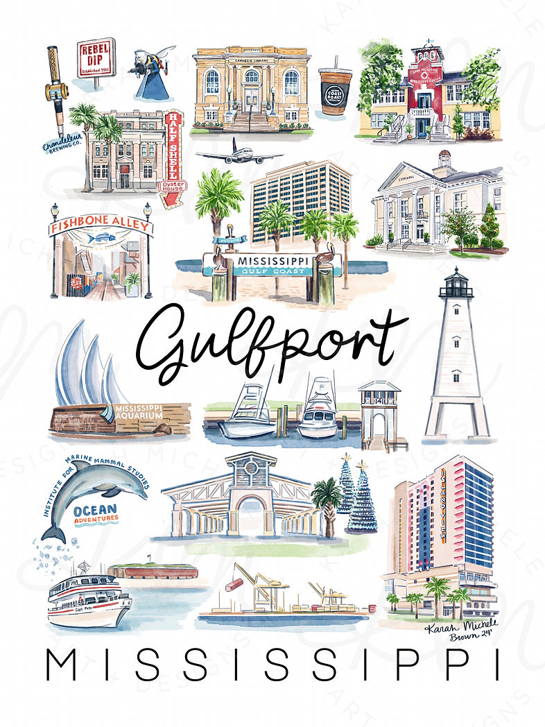 The City Prints consist of local favorite and historical places that are in each city. These prints are custom designed and painted by local artist Karah Michele Brown and they make the best gifts to a friend or loved one!