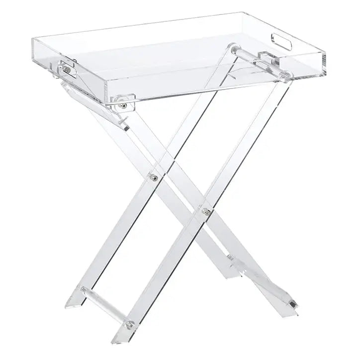 This portable, foldable and lightweight tray side table is very easy to move. It’s foldable for storage and features side handles that make it easy to carry. Turn any space or room into the perfect little food and drink buffet. * Multifunctional: This serving tray side table is great for eating, serving and displaying food. It can be used as a sleek bar cart in your kitchen, living room or dining room. Showcase bottles, glasses, carafes and more. * Easy to clean: Wiping away messes and spills is effortless because this foldable tray side table is easy to clean. Just use a cloth or paper towel to keep it clean. A high-quality material resists liquid damage cracks and scratches.