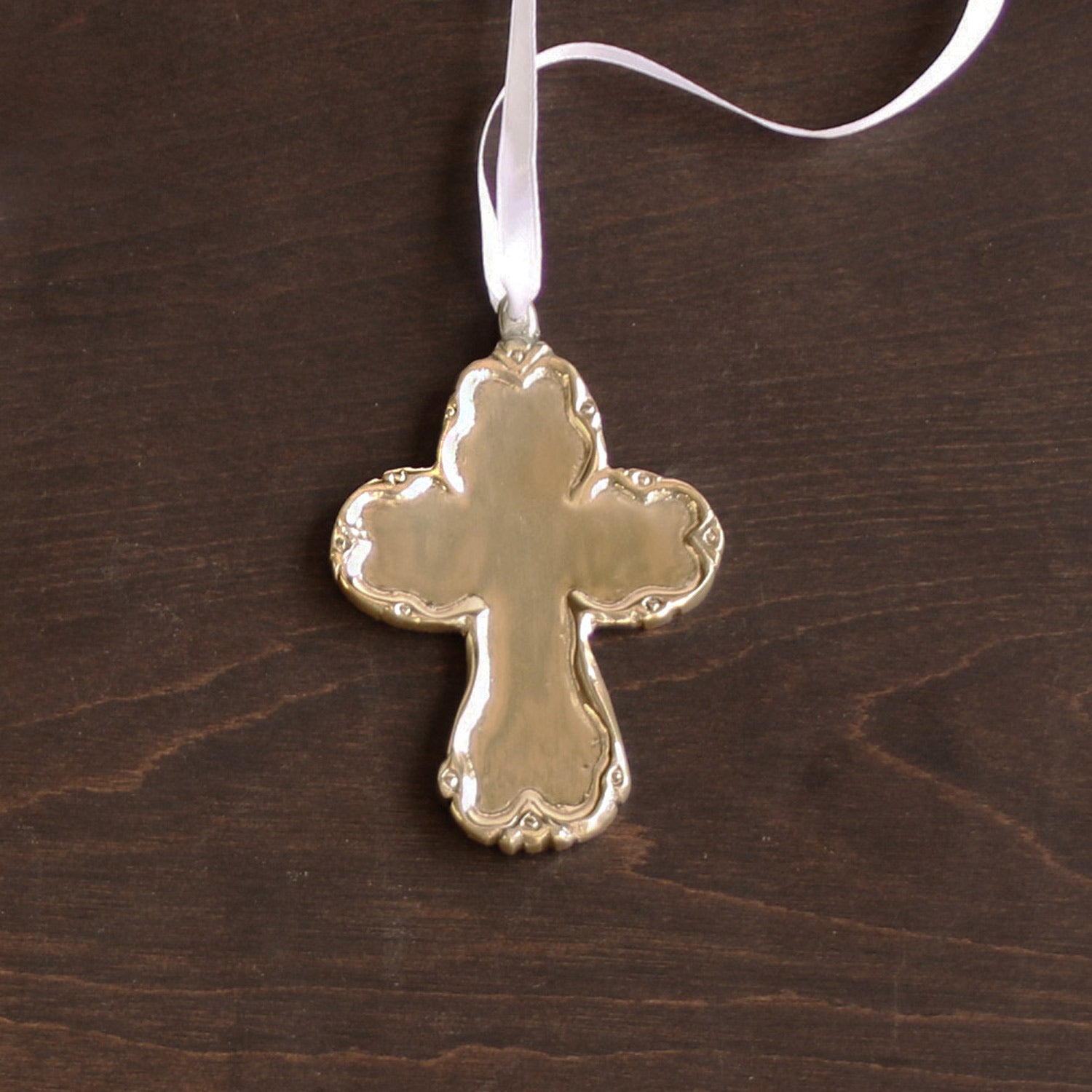 Now available in gold! Delicate and refined, the GIFTABLES Sierra Modern Princess Cross Ornament (Shiny Gold) is composed of tarnish free aluminum with a proprietary gold tone finish. This lovely cross ornament may be hung from the branches of a Christmas tree, suspended from a length of satin ribbon (included), or placed flat on a table as a decorative accent. In search of a unique gift of gold tone metal? They'll enjoy this mini cross ornament from the GIFTABLES Collection no matter the season! It may be engraved for a personalized and heartfelt gift for Christmas or Easter, weddings, christenings, first communions, and other special occasions. Packaged in a lovely gift box. Made of an easy-care, tarnish-free aluminum alloy.