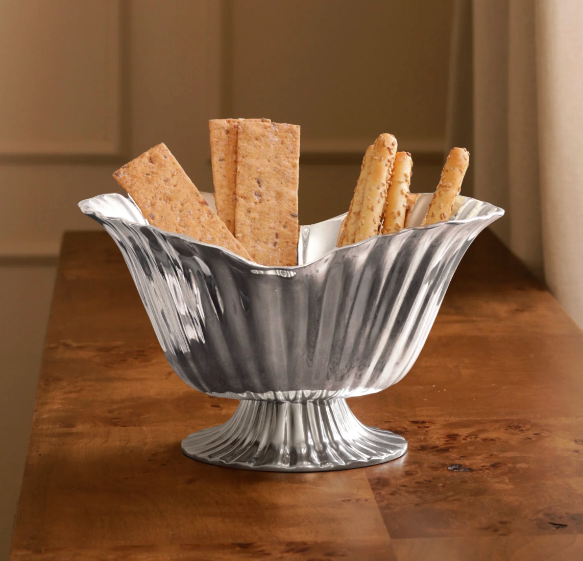 Bring heirloom charm to the table with the VINTAGE Vienna Medium Grissini Pedestal, featuring beautifully fluted surfaces and elegant proportions. Perfect for serving breadsticks, appetizers, or small desserts, it also doubles as a decorative centerpiece.