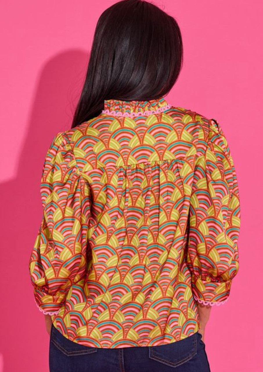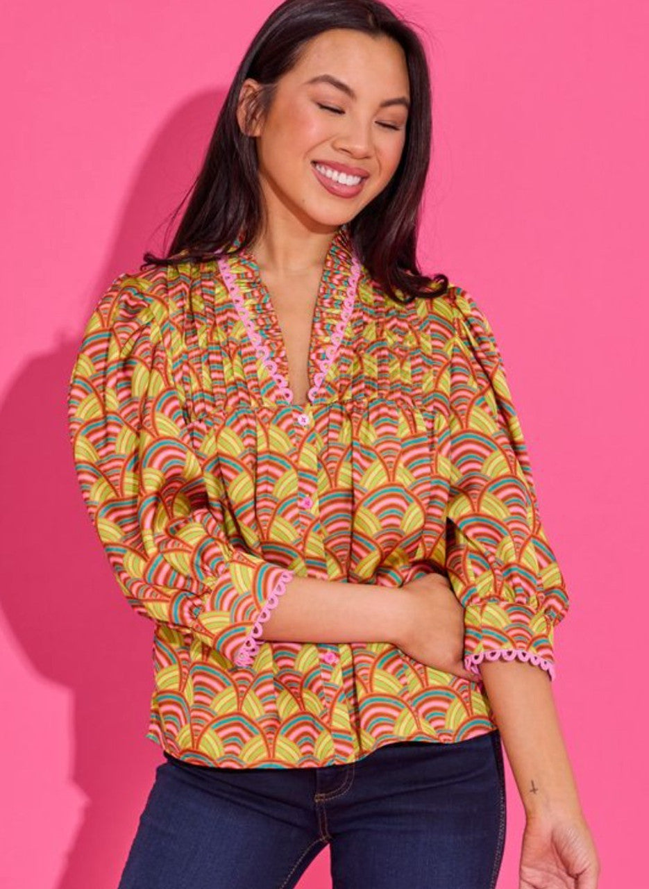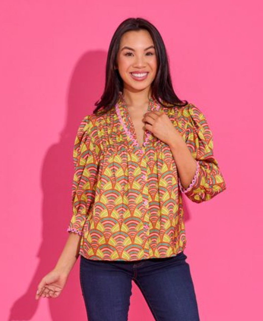 Our favorite top from Alden Adair is back in a gorgeous fall print. The softest + silkiest material, a fun abstract print, perfect mix of neutrals + brights, and SO perfect to take from work to play