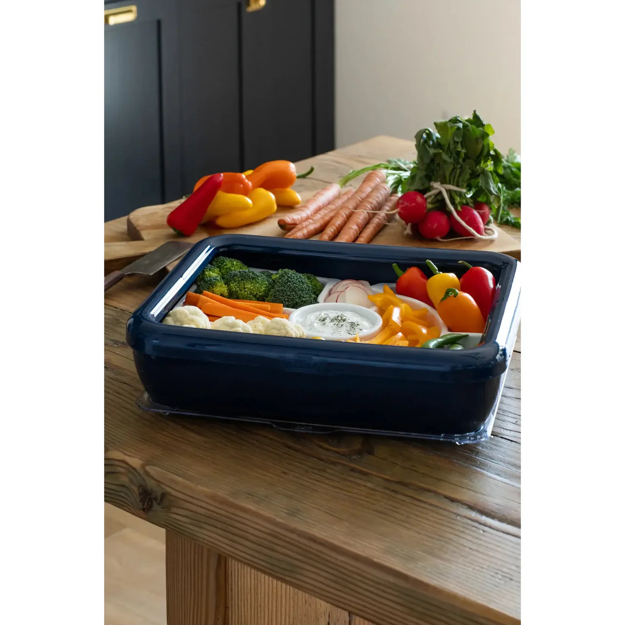 Charcuterie/Veggie Trayz Inserts are a convenient & practical way to transport and serve your favorite meat/cheese, veggies, various dessert combinations or condiments! Easy to use: Simply open your Fancy Panz and instead of a foil pan, insert the Charciterie/Veggie Trayz, it's that easy! A flexible cold pack (not included) can be used underneath any of our Trayz Inserts to ensure that your food stays fresh and cold for longer. Features: 9 compartments with raised partitions to help keep your food in place, perfect for traveling! Top rack dishwasher safe Made in USA/BPA Free All Trayz inserts are sold separately, Fancy Panz not included