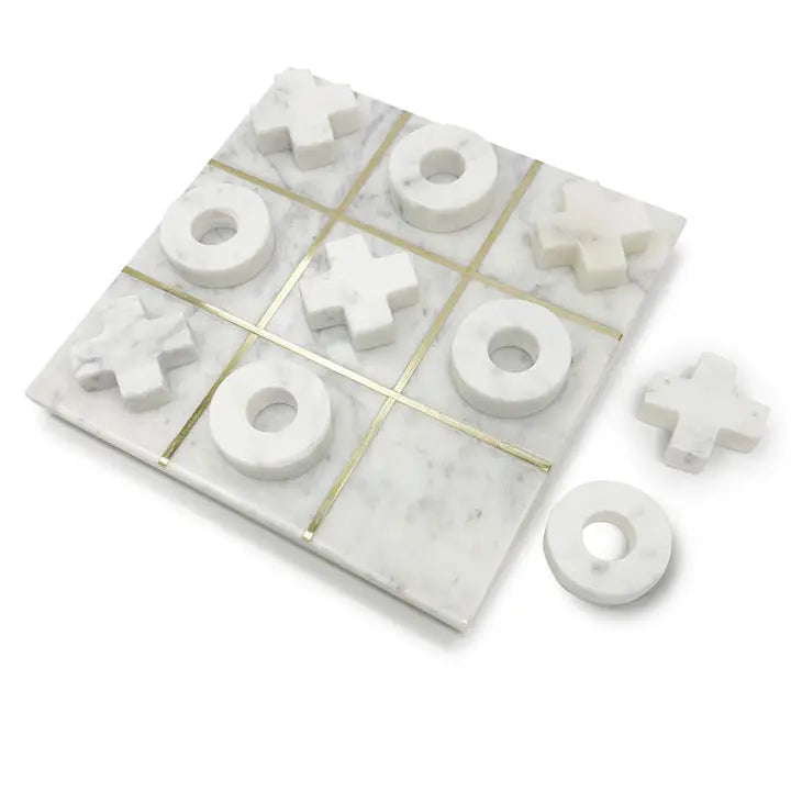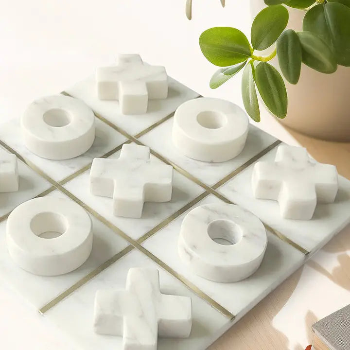 Elevate your gaming experience with this exquisite Marble Tic Tac Toe, combining timeless elegance with classic entertainment. Crafted from luxurious marble, both the board and the playing pieces exude sophistication and charm. This set features 10 pieces in total, including 5 "x" pieces and 5 "o" pieces, each meticulously carved from marble for durability and style. The board showcases a striking grid pattern with gold-colored vertical and horizontal lines, creating nine squares for strategic gameplay and visual appeal. • Premium Marble Construction: Crafted from high-quality marble, both the board and the playing pieces boast durability, longevity, and a luxurious aesthetic.