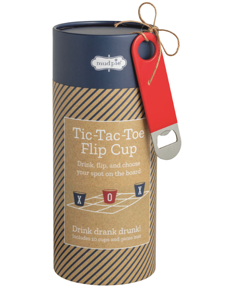 The classic game of flip cup with a tic-tac-toe twist! Comes with game mat, cups and bottle opener.