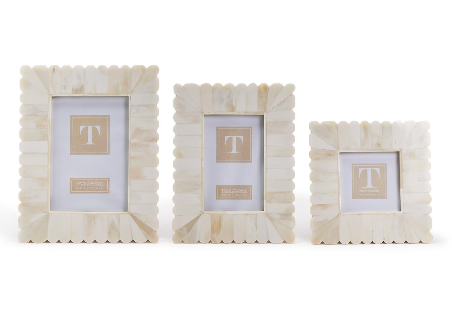 A perfect blend of sophistication and timeless design. Crafted with precision from high-quality materials this collection effortlessly elevates your cherished memories. The scalloped edges add a touch of elegance, making these frames not just a showcase for your photos but also a stylish accent to your living space.