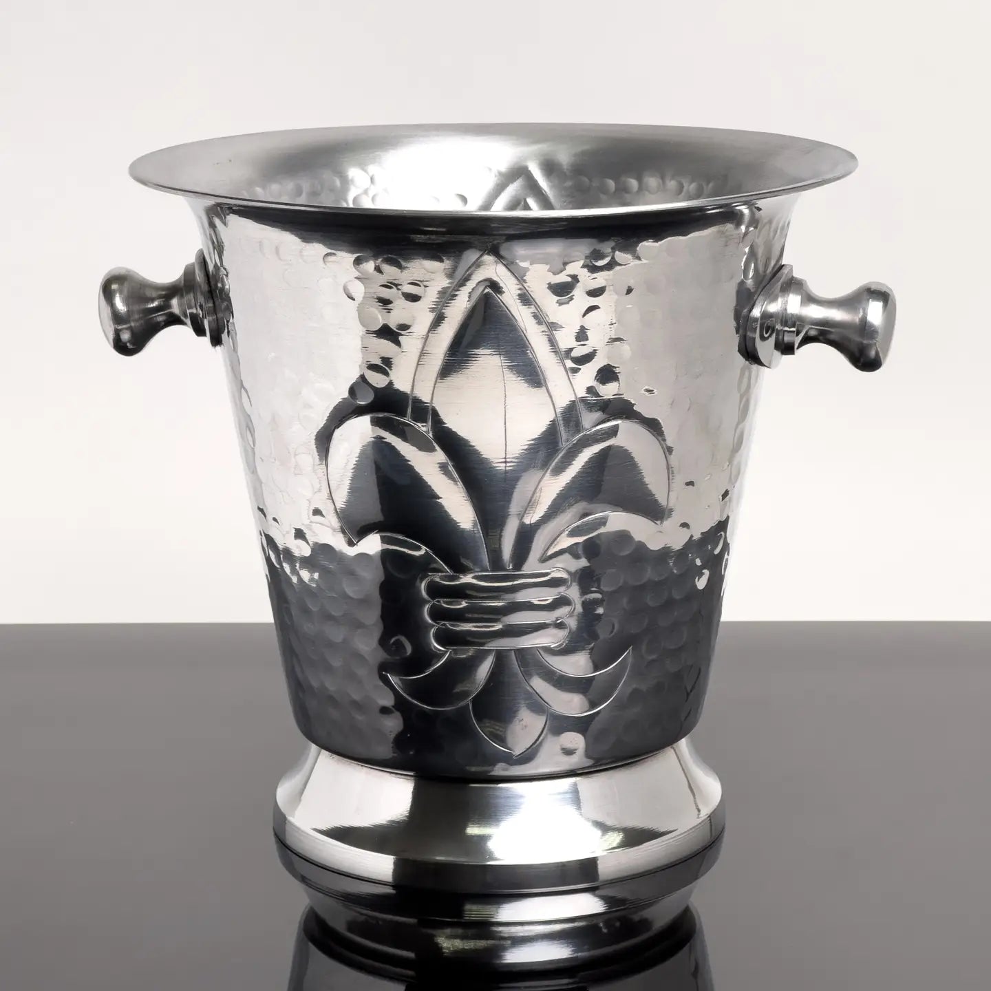 Hammered Aluminum Fleur De Lis Ice Bucket w/ Handles