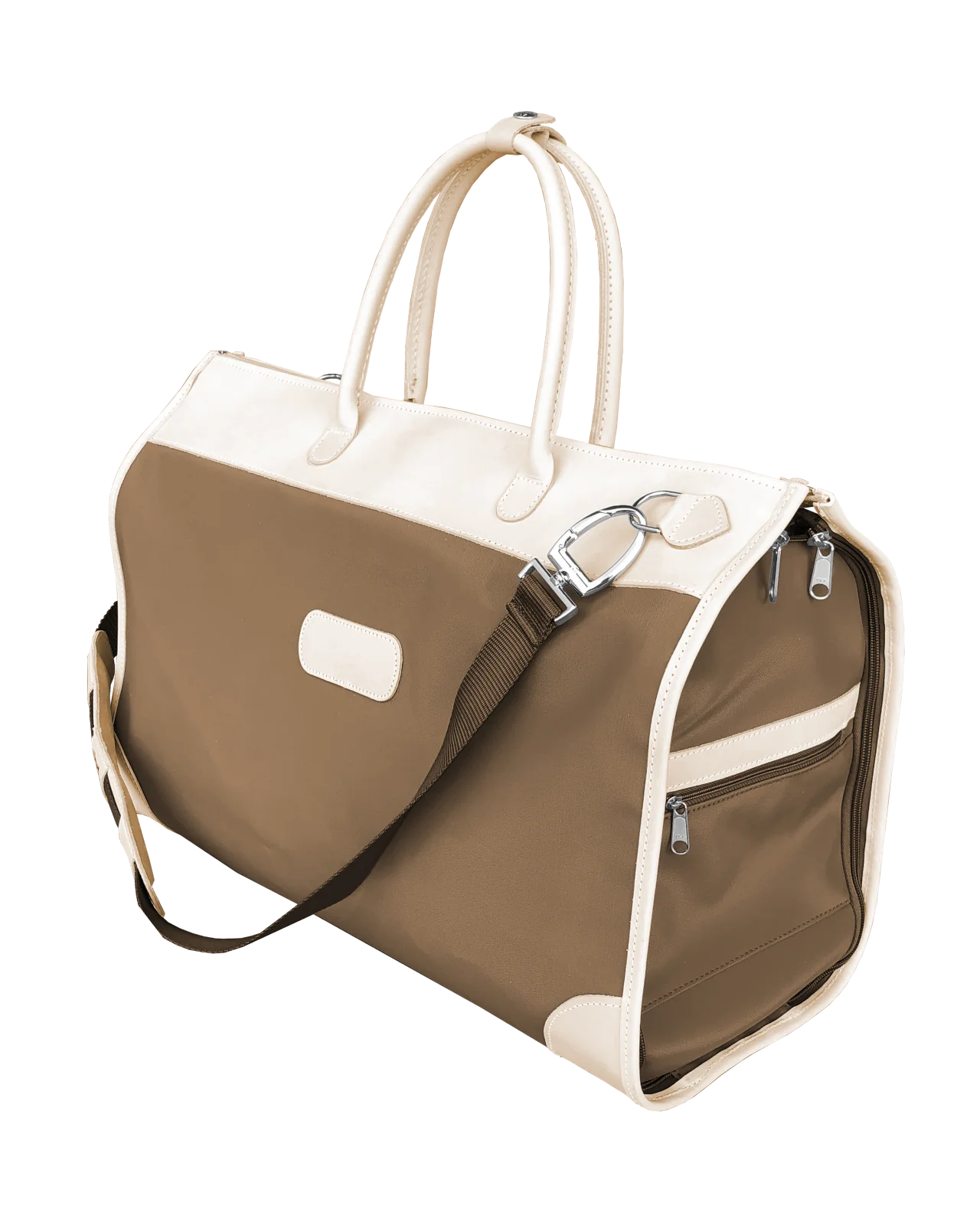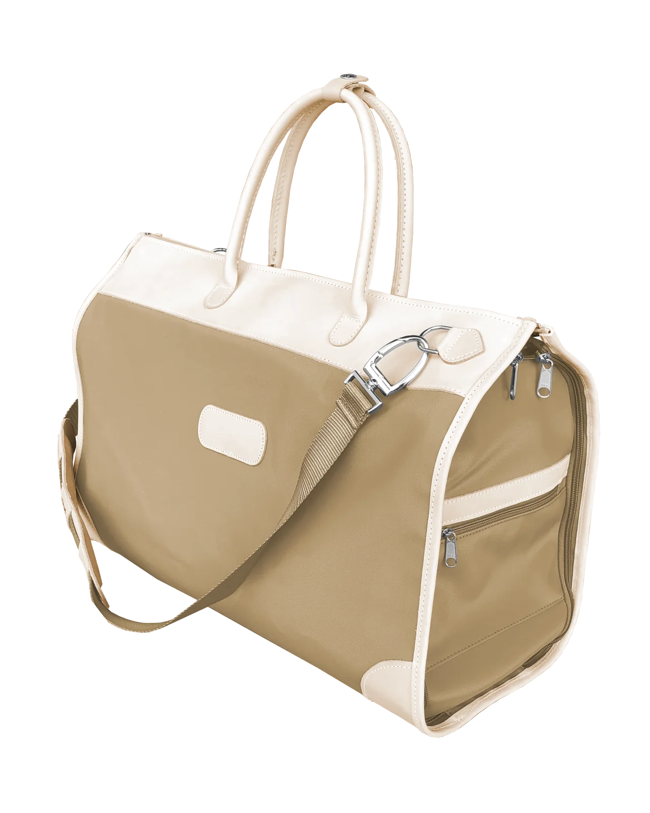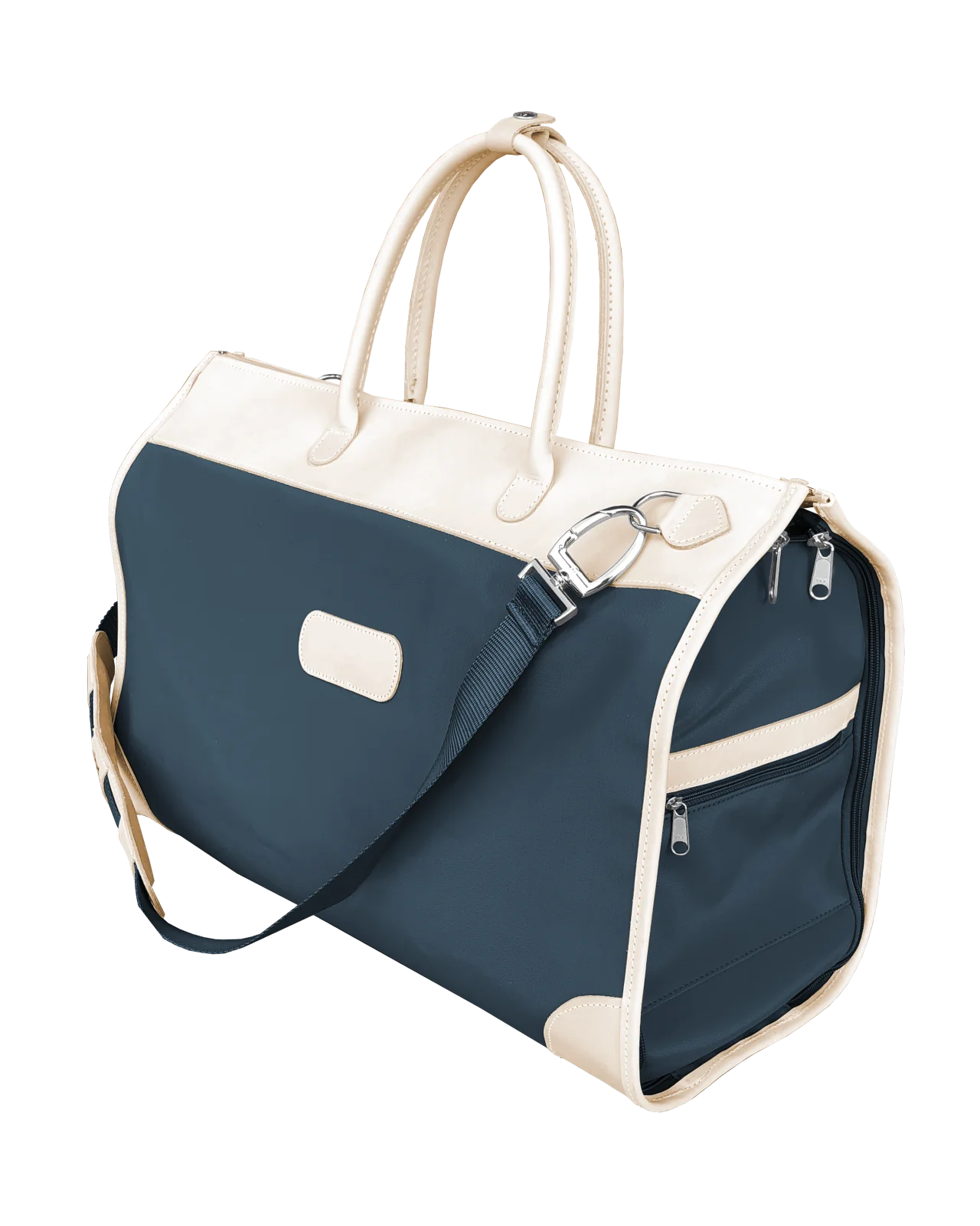 Our must-have for travelers, this stylish carry-on compliant duffel bag fully unzips to convert into a hanging garment bag. Includes rolled leather handles, as well as an adjustable shoulder strap for comfort carry. Zippered exterior pockets on both ends & elastic interior pockets for shoes, socks, or undergarments. The zippered exterior pockets on the back of the bag double as a trolley sleeve. Comfortably fits up to 5 hanging garments in the garment sleeve. Comes with a removable hook for easy storing over any door. An elegant duffel bag when you need to carry it, a garment bag when you need to hang it, and folds completely flat when you need to stow it, the Southtown has plenty of room for all of your weekend essentials.