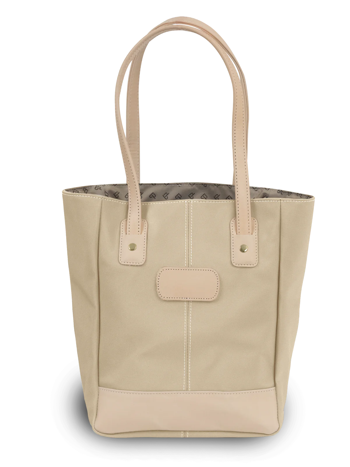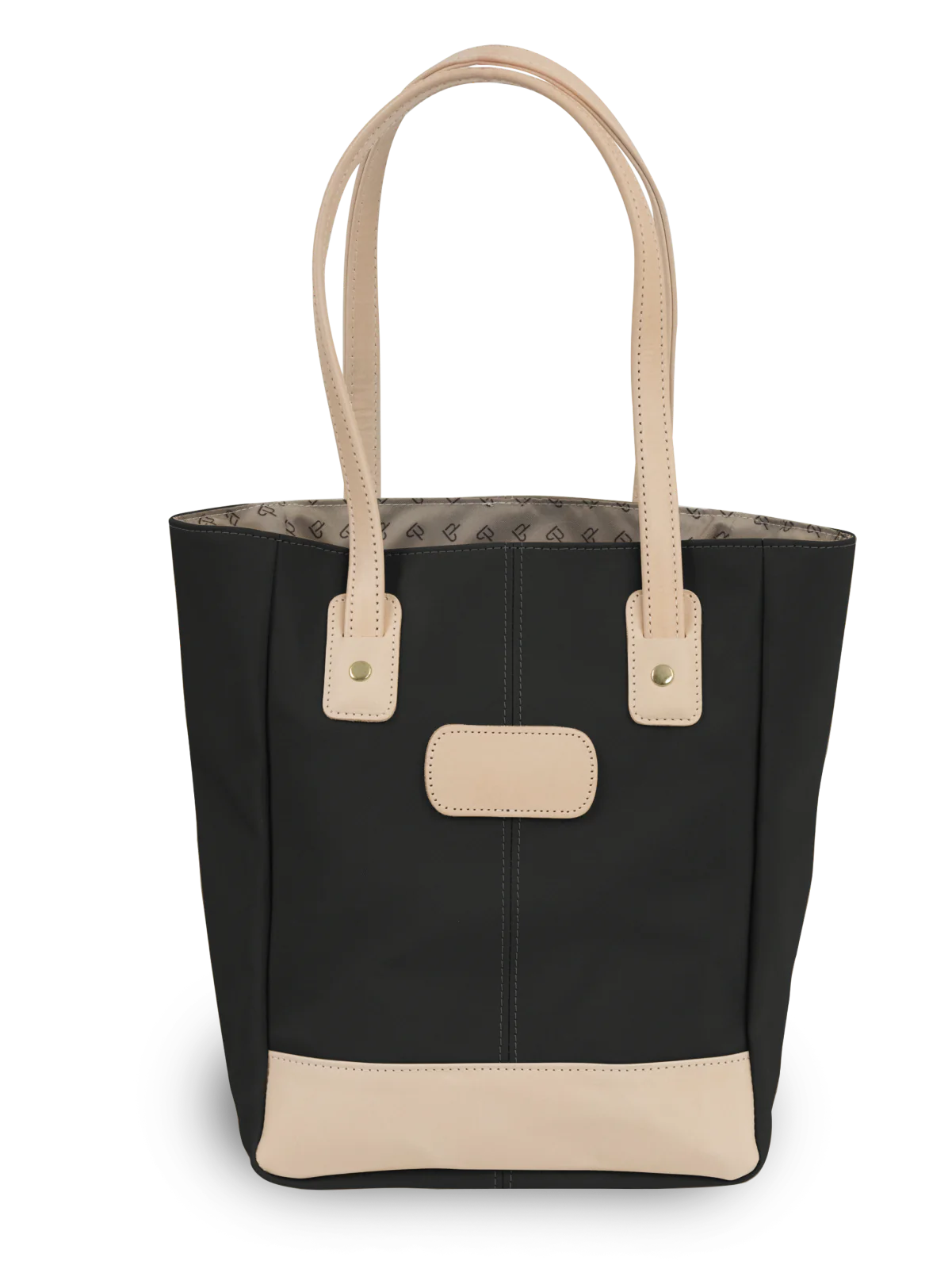 A simple yet classy looking small tote or large purse with a handy outside pocket for a cell phone, keys, or other often-used items. Also includes four open and one zippered inside pockets.