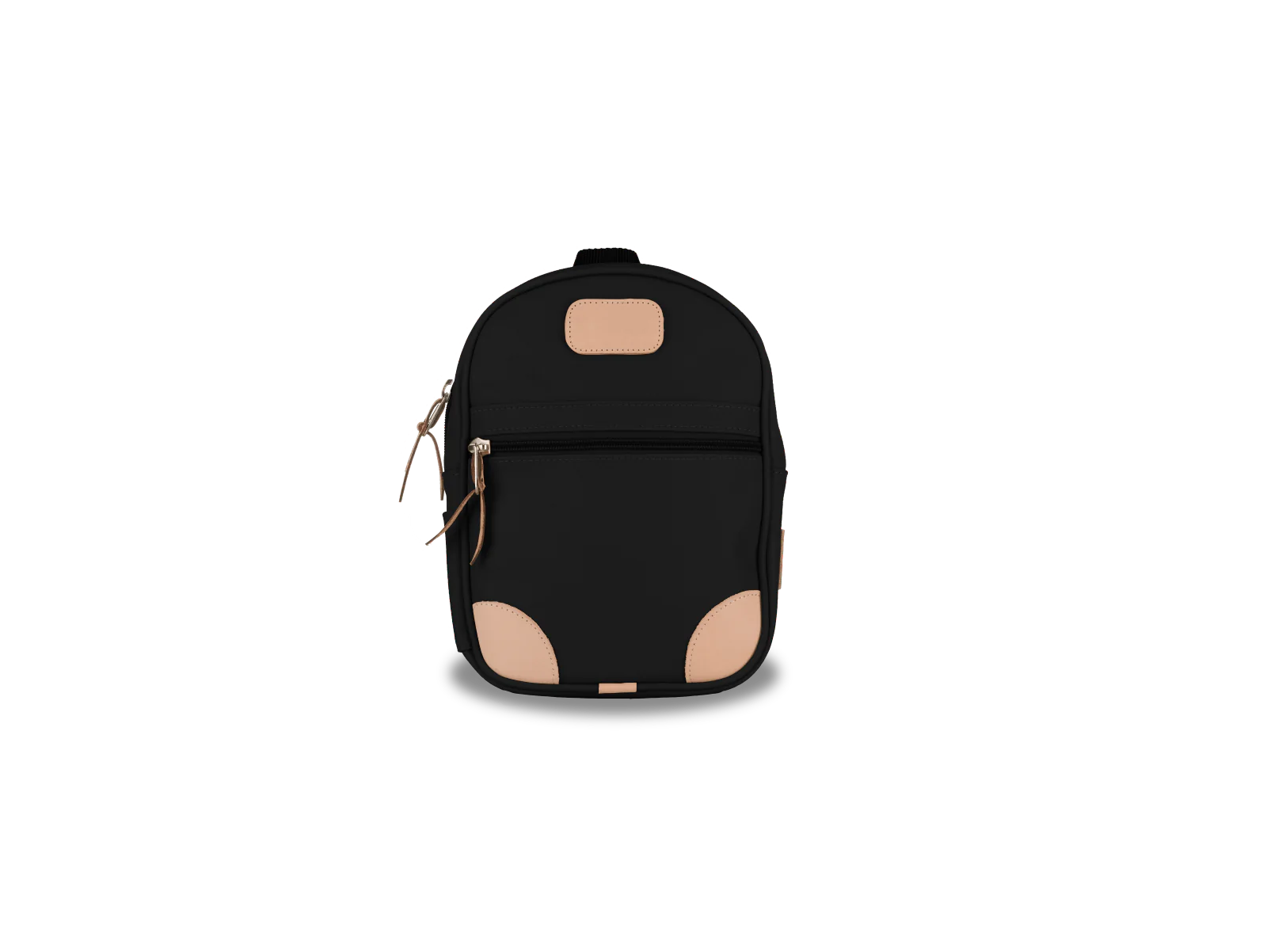 Start them young with a Jon Hart mini backpack. Perfect for the little that wants to be a big kid and still travels light. With just enough room for the essentials this bag will stay light so that you don't end up carrying it for them. Coated canvas with natural leather trim.