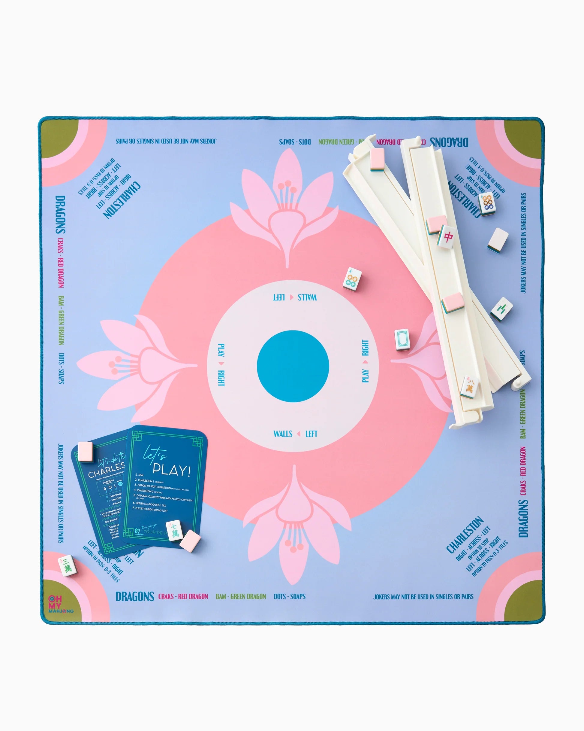 Behold the chic and feminine La Fete Mahjong Mat, a springtime-inspired mat crafted to infuse your gameplay with romance and sophistication. The allure of the La Fete Mahjong Mat goes beyond its captivating pink, blue, and olive aesthetics. With a non-slip surface that ensures your gameplay remains steady, you can indulge in your passion for the game with the confidence of a seasoned pro. And as if that weren't enough, this effortlessly fabulous mat also comes adorned with essential rules for American Mahjong along the sides, guiding you through the game with clarity.