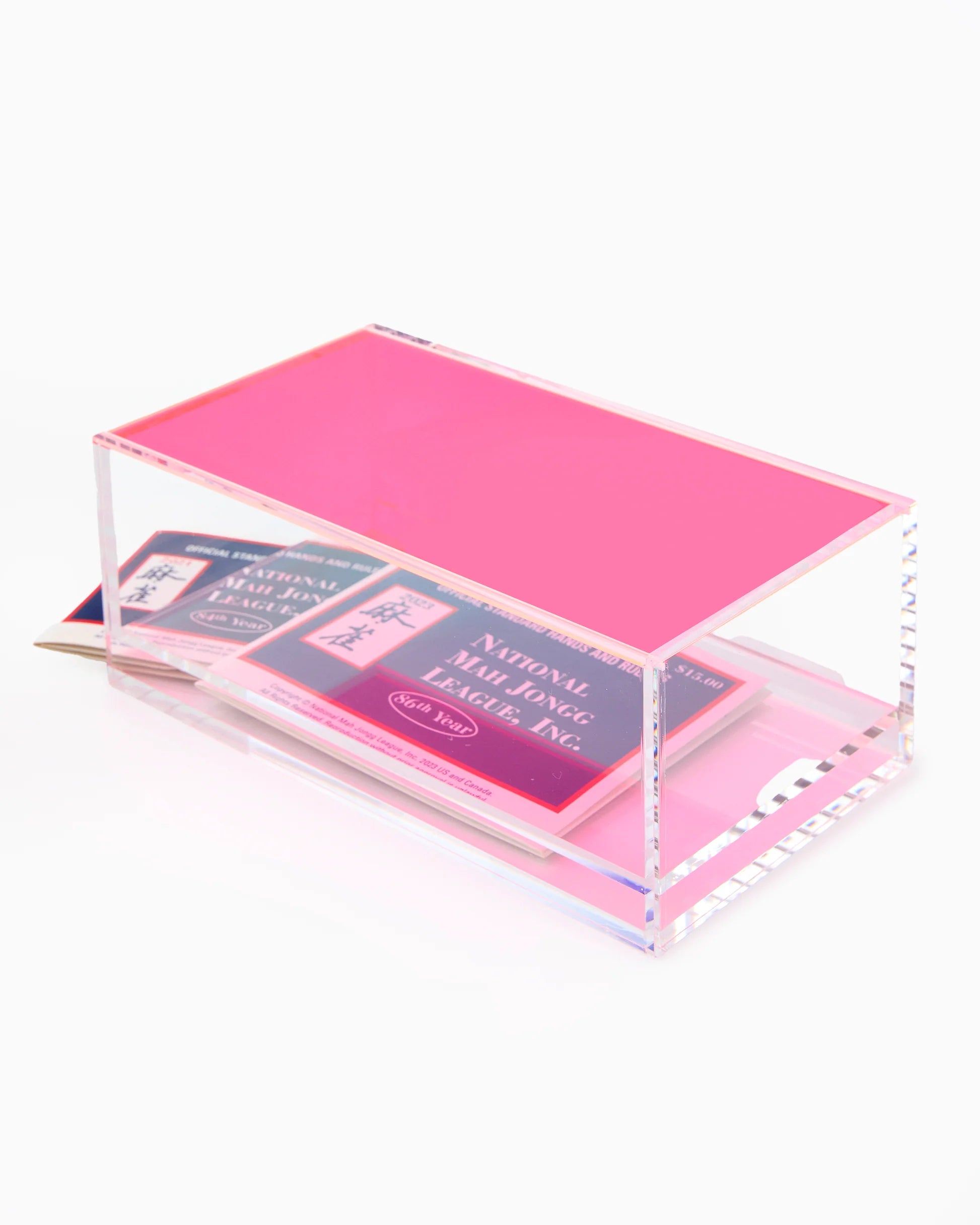 This box can hold standard and large size American Mahjong tiles, all displayed for your viewing pleasure. Plus, there's a slot to store your National Mah Jongg League playing cards - because let's be real, you're a serious player.