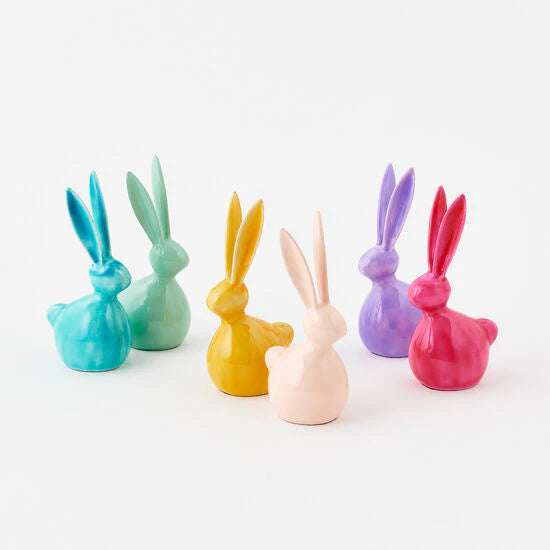 These colorful metal bunny figurines add a playful pop to spring and Easter décor. Finished in glossy pastel hues, each bunny features a modern silhouette that looks charming on shelves, tabletops, or seasonal displays. Mix and match colors for a cheerful accent anywhere in your home.