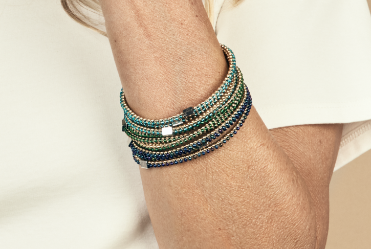Bracelet from the Halo Collection. 24K Gold PVD Plated Stainless Steel with Glass beads.