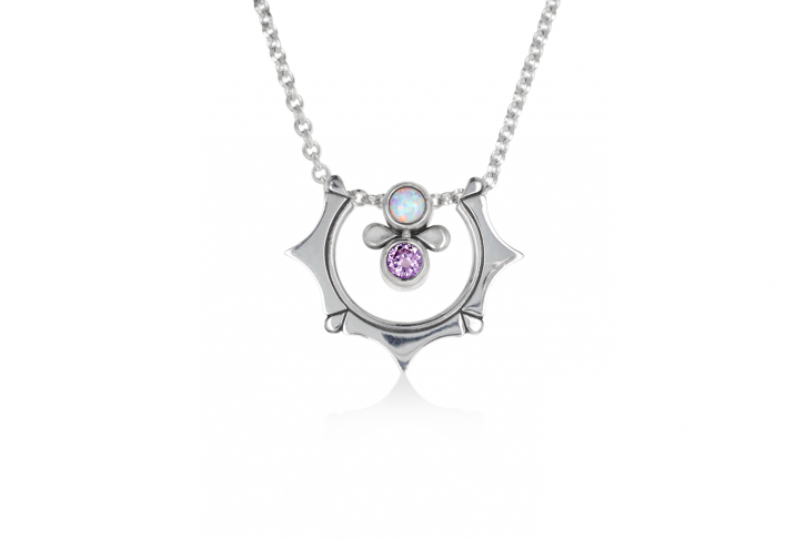 Pendant featuring an Opal Cabochon and Pink Tourmaline symbolizing the colors of the horizon at sunrise.