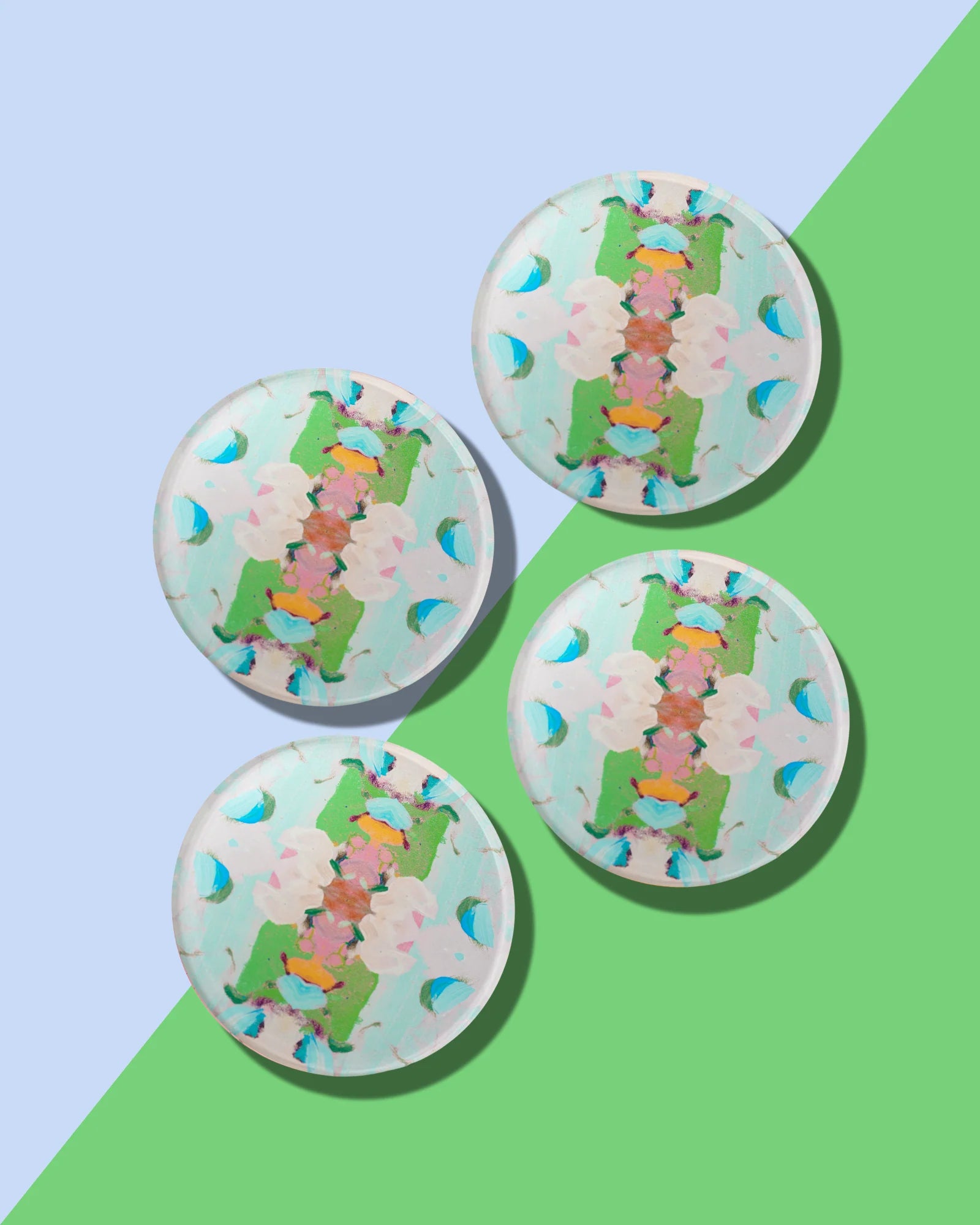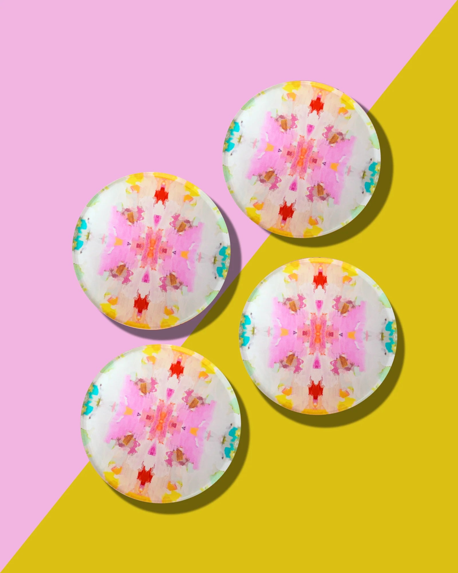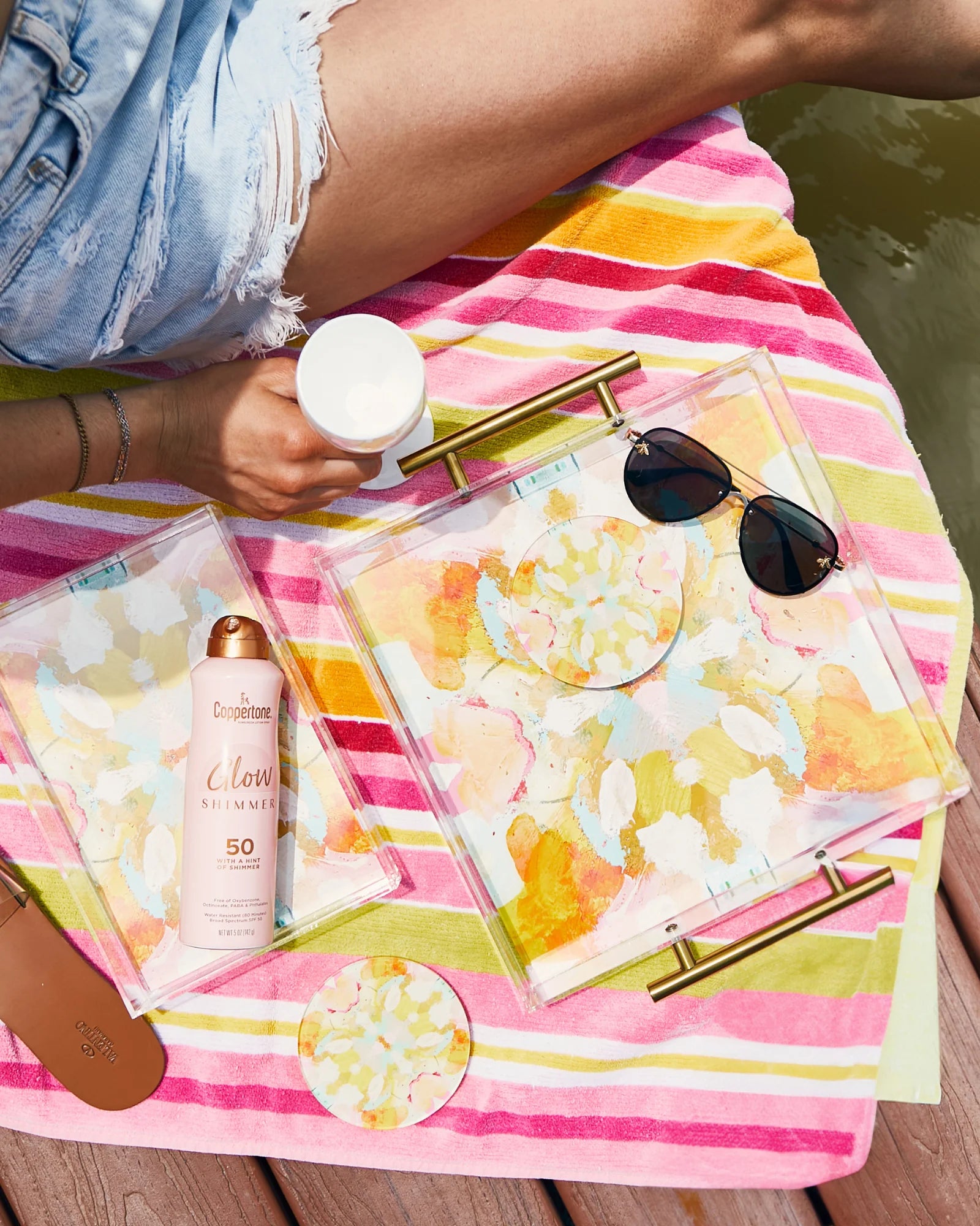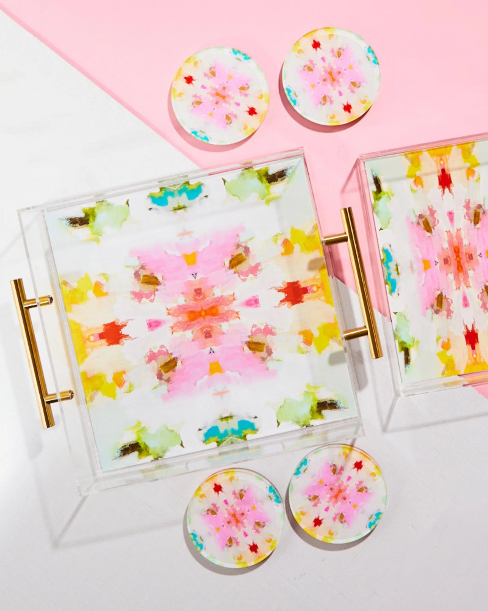These acrylic coasters protect your tables and counters in style while adding a pop of color to any room. The bold design is perfect cheers to anyone who knows how to have a good time. The original Laura Park Designs x Tart By Taylor Collaboration artwork is sandwiched between two thick layers of acrylic, making this colorful piece of art visible from both the front and the back.