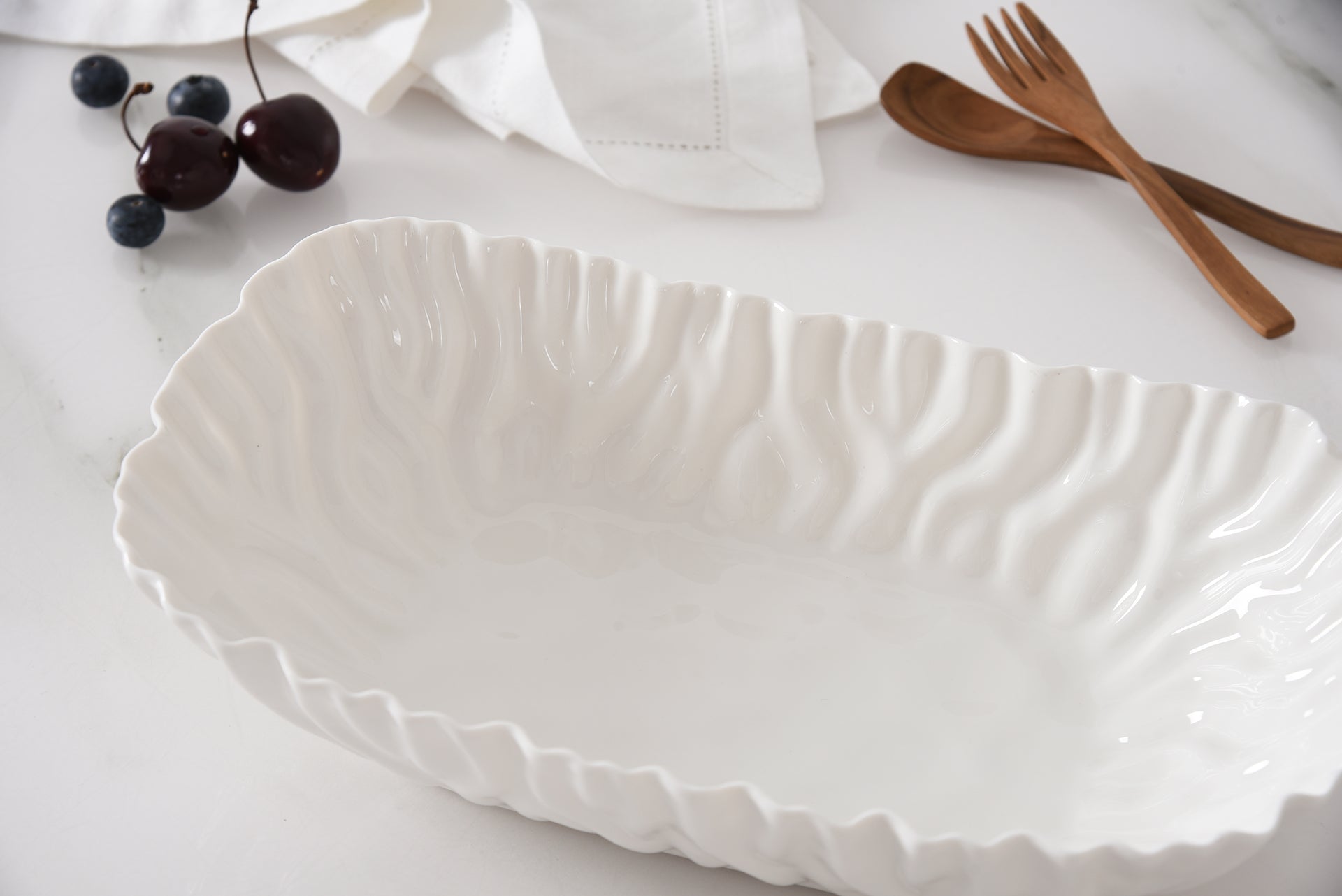 Perfectly sized for side dishes, roasted vegetables, or shared appetizers, this elegant piece brings charm and versatility to any table. Crafted in durable, high-fired white porcelain, it’s microwave safe, oven safe up to 500°F, dishwasher friendly, food safe, and tarnish resistant. Everyday elegance with effortless care.