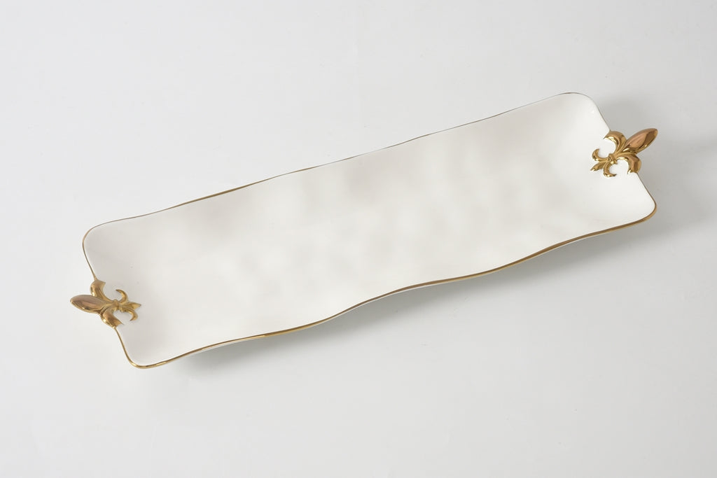 . An incredibly versatile all-purpose serving platter that makes an easy transition from oven to table. Show off your delicious appetizers, side dishes and desserts on this beautiful platter! Beautifully crafted in high-fired white porcelain with intricate gold detailing. Food safe, dishwasher safe, oven safe to 500°. Tarnish and stain-free. Easy Care.