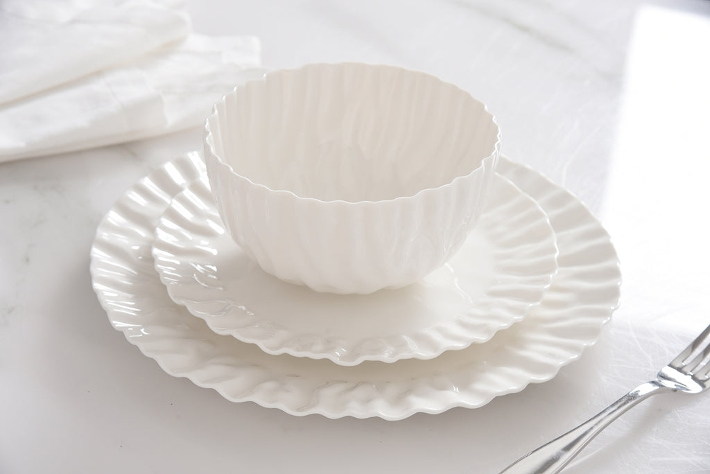 Set the Table with our round cereal/soup bowl from our dinnerware collection. Each bowl has a slim band of gold titanium beads against a gleaming white porcelain body adding understated elegance to any table. Great for fancy dinners or everyday meals. Elevate every breakfast by serving cereal or yogurt in this beautiful bowl! Or place one at every place setting for soup or salad at dinner. Dishwasher safe, tarnish free, and stain resistant.