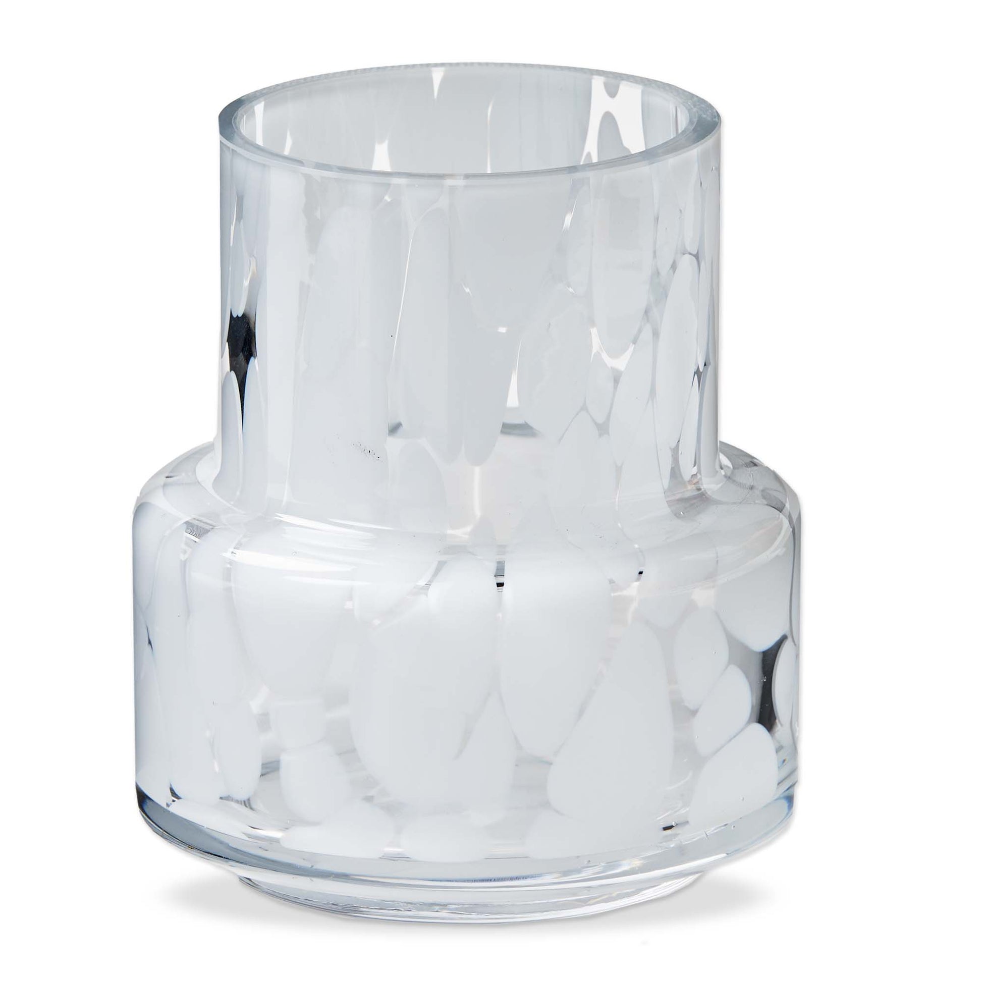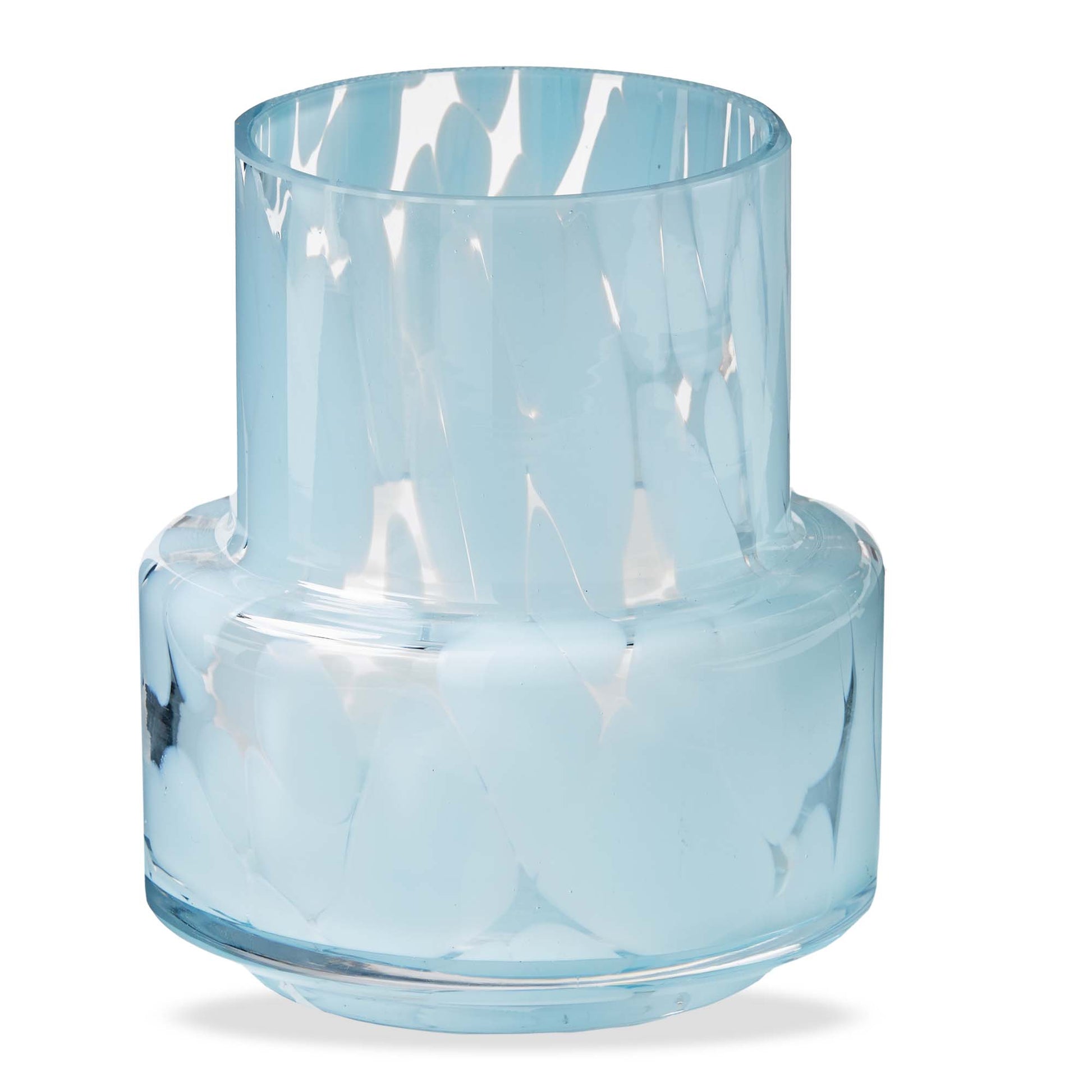 hand-crafted by artisans using traditional blown glass techniques, this light blue glass vase features a beautiful speckled design and a soft light blue hue. perfect for displaying a single flower or a small bouquet, it brings a touch of coastal elegance to your home décor.