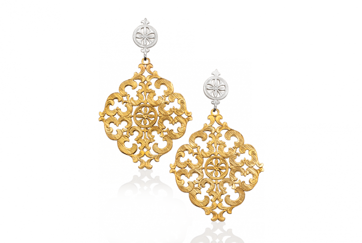 Earrings from the Renaissance Collection. Bronze and Sterling Silver with Sterling Silver posts and friction backs or Sterling Silver with Sterling Silver posts and friction backs.The architectural details of the Renaissance collection pay homage to the French Quarter and the brilliant strength of resilience, recovery, and rebirth found in New Orleans.