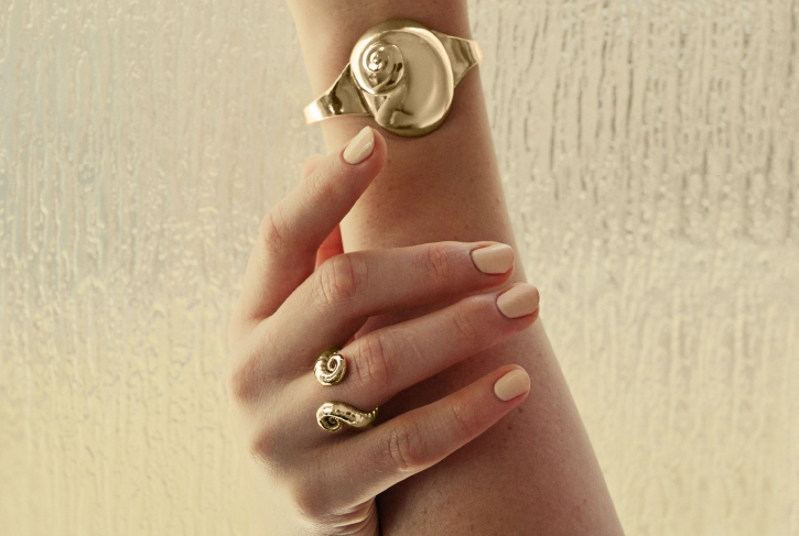 - Statement ring with double spiral shell design