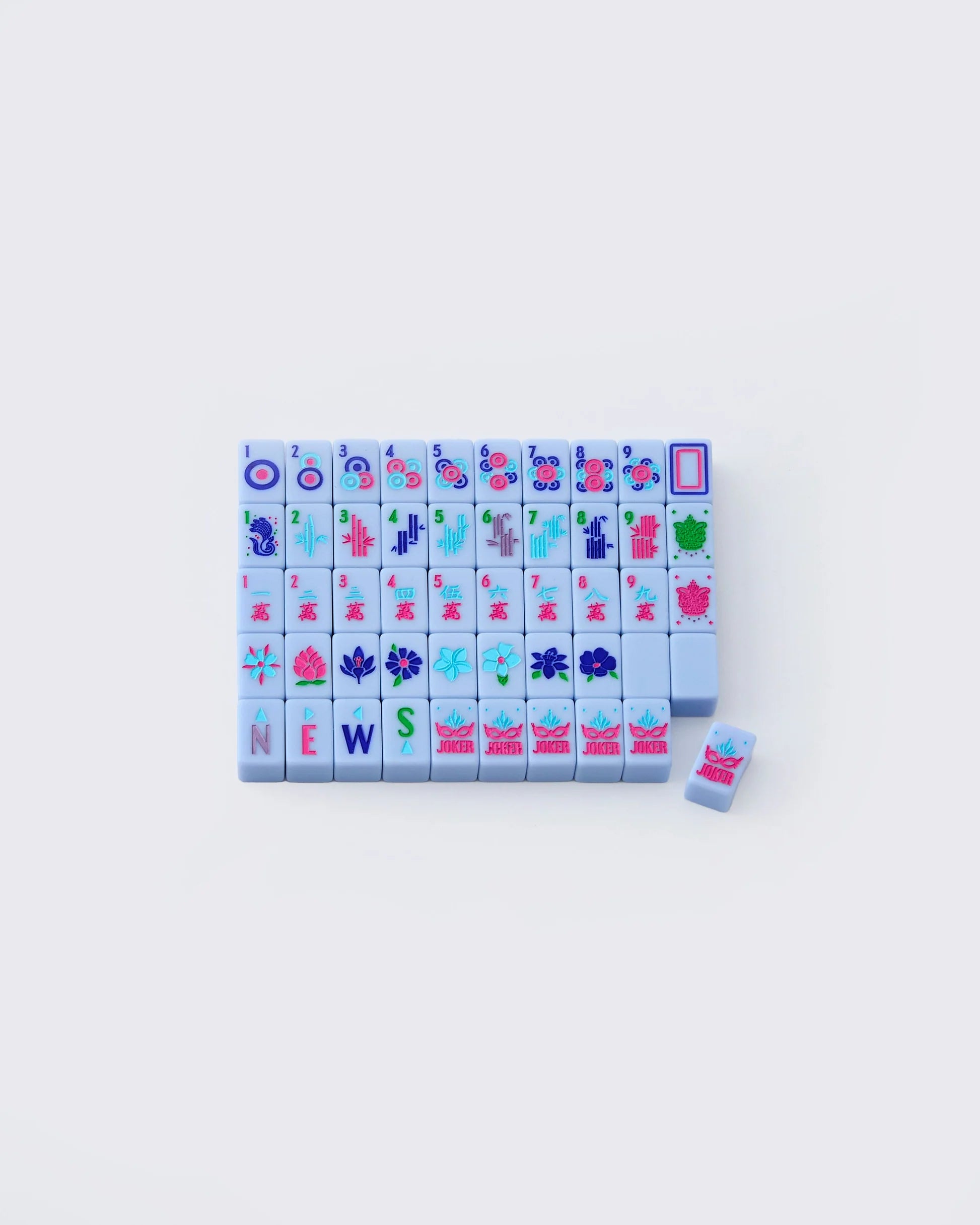 Take your Mahjong game wherever you go with our Mahjong Travel Set! This compact and lightweight set effortlessly slips into your carry-on, ensuring that the joy of Mahjong is always within reach on your adventures. Crafted with Preppy Soiree tile designs, this set exudes elegance and style.