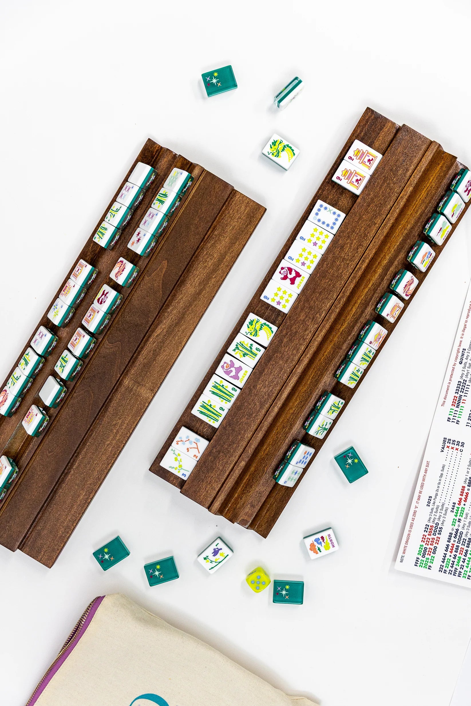 If you enjoy two player mahjong, but don't like the clunkiness of having two separate racks in front of you, we have a solution! Our wooden two player mahjong racks feature a stacked design accommodating two lines of play for each player.